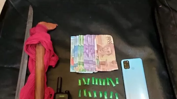 "Barang bukti yang diamankan itu 18 paket berisi kristal bening diduga sabu dengan berat bruto 2.21 gram. Lalu termasuk parang, HT, handphone android dan juga uang tunai sebanyak Rp230 ribu," rincinya.
