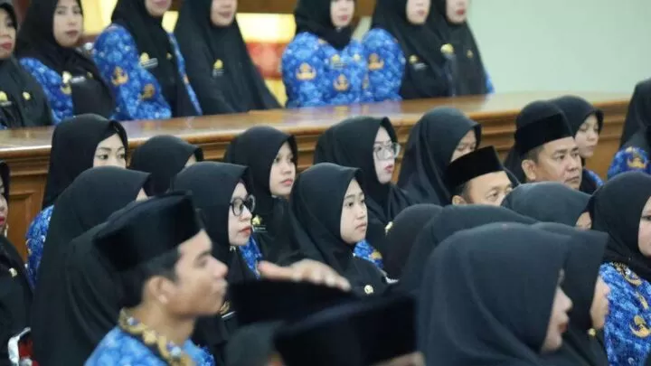 Terkini.id, Pinrang -- Pemerintah Kabupaten (Pemkab) Pinrang menyerahkan Surat Keputusan (SK) kepada ratusan orang Tenaga Pegawai Pemerintah dengan Perjanjian Kerja (PPPK), di ruang pola Kantor Bupati Pinrang, Jumat 6 Oktober 2023.